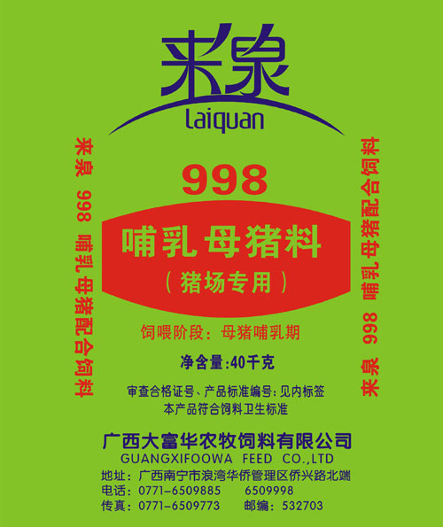 來泉998哺乳母豬料(豬場專用)